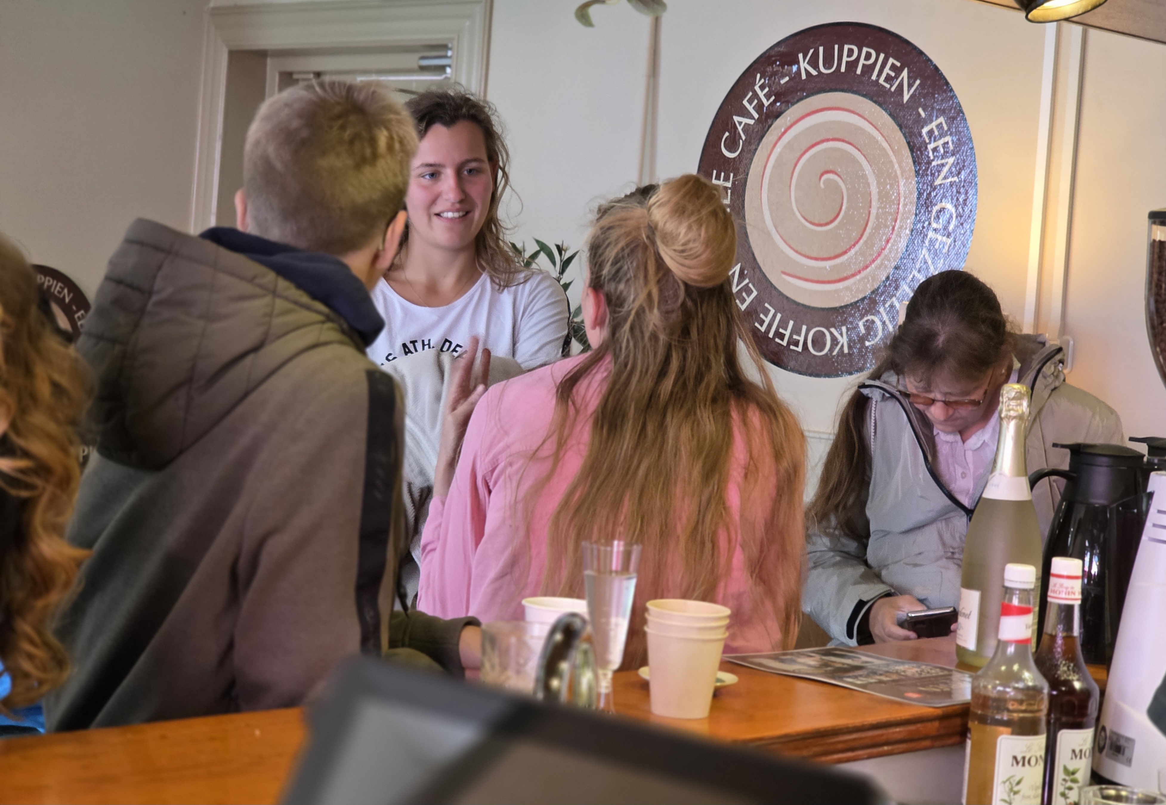 De groep van jonge vrijwilligers bestaat uit een team van ongeveer veertig jongeren. Het café is 'een plaatje van een plek' geworden, mede dankzij de hulp van talloze vrijwilligers. Jong en oud hebben samengewerkt tot een mooi resultaat en succes.